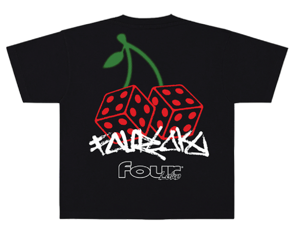 Make your own luck with this JACKPOT shirt featuring loaded loko dice graphics on the front and back.